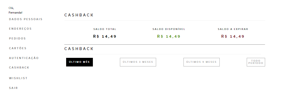 novamente. Caso precise realizar nova compra em virtude de troca, poderá utilizar o último cashback